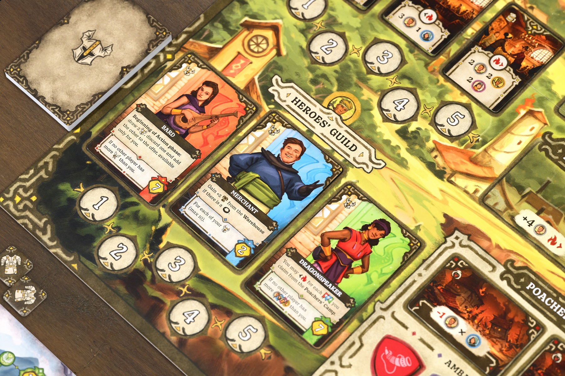Emberheart is a quick-playing, medium-weight worker placement game. As one of the King’s Champions, your task is to recruit heroes, rescue dragons and expand their preserves, train your own dragon companion, and oppose the roaming poachers.